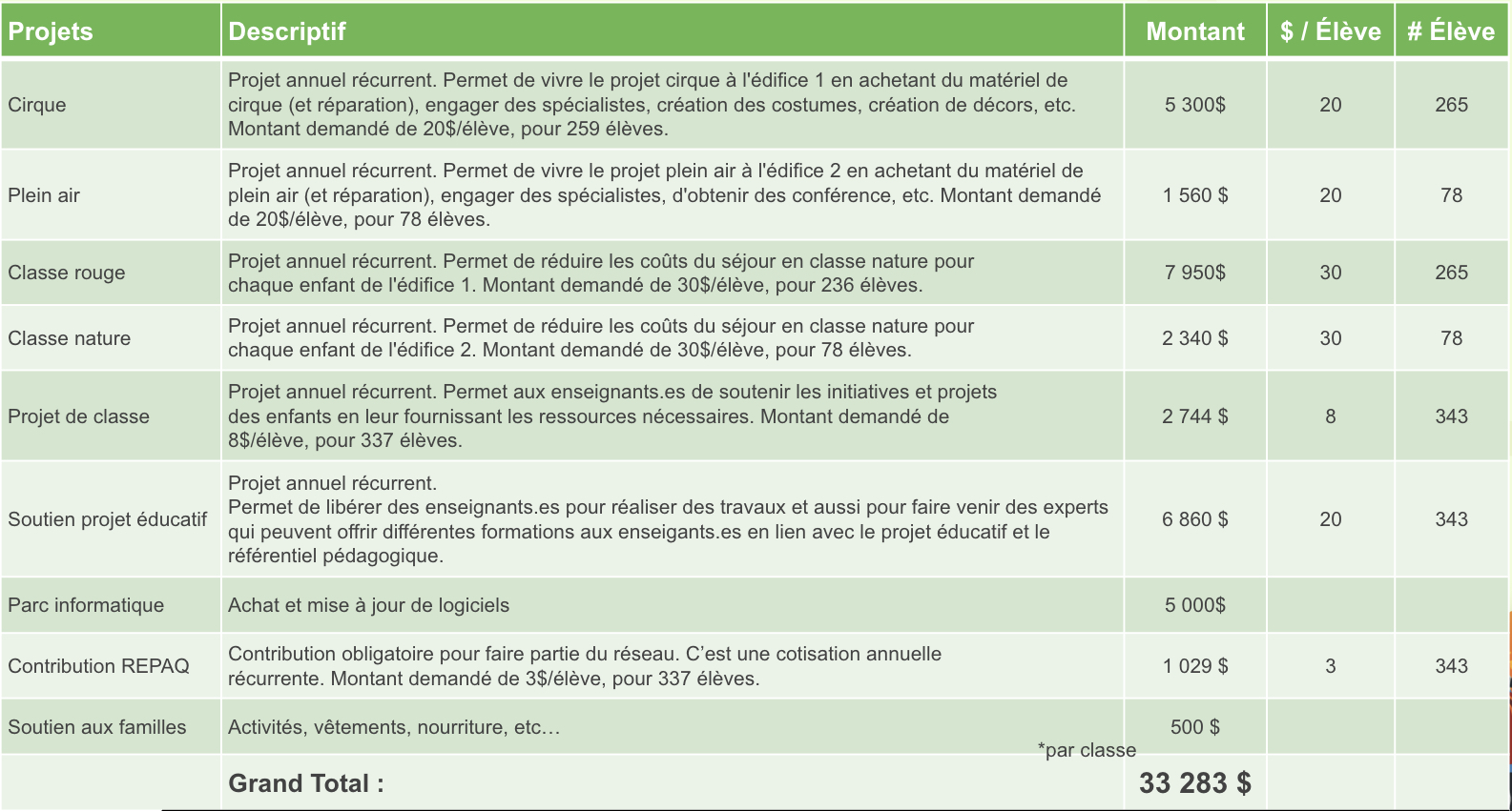 Demandes budgétaires 2025-2026 - Direction de l'École Le Baluchon